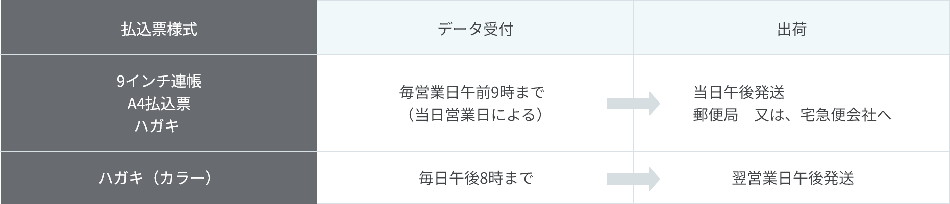 - ※3 収入印紙不要の対応はハガキ、9インチ連帳、A4払込票が対応可能です。ハガキ(カラー)は対応ができません。